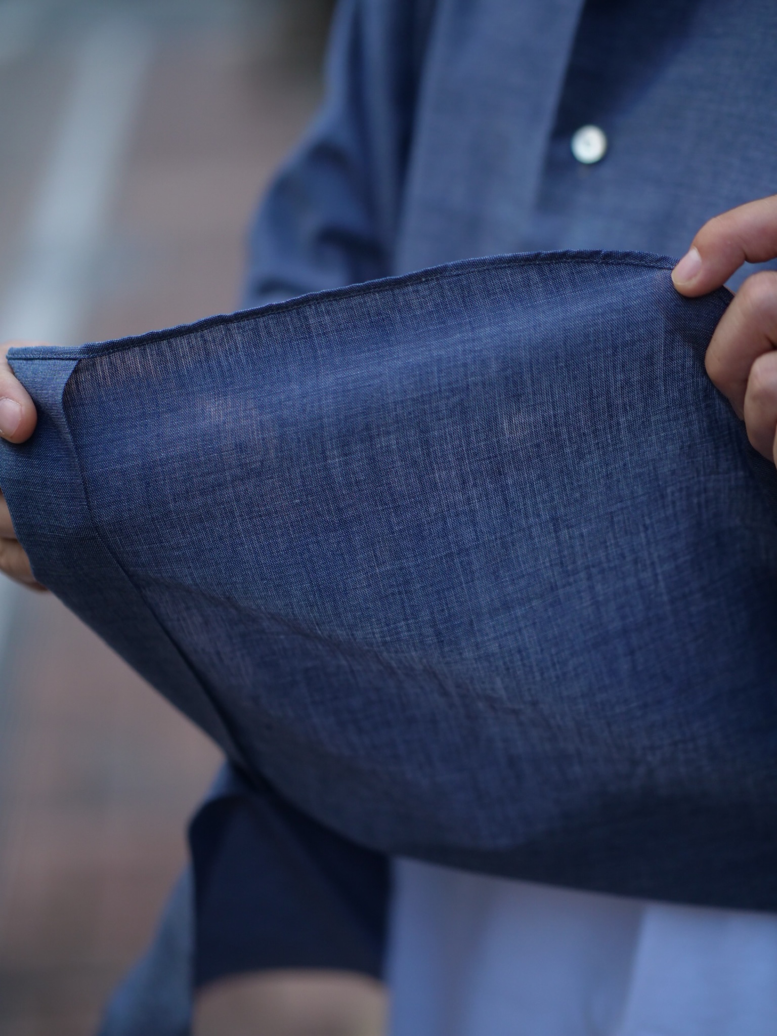 そして、蝉が泣き噦る今の季節からでも着れるテンションの薄めな生地。